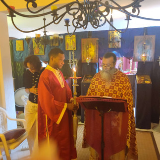 L’Eucharistie est ainsi la fête de l’église ou mieux encore : l’église Fête, réjouissance en la présence du Christ, anticipation de la joie éternelle du Royaume de Dieu. Chaque fois que l’église célèbre l’Eucharistie, elle est " chez elle " - au ciel. Elle monte la ou le Christ est monte, afin de nous faire " manger et boire a sa table, dans son Royaume... " On comprend alors pourquoi l’Eucharistie est incompatible avec le jeϋne, car le jeϋn (nous le verrons plus loin) est la meilleure expression de l’église en tant qu’elle est pèlerine et encore en marche vers le Royaume céleste. Et les fils du Royaume, dit le Christ, ne peuvent jeϋner tant que l’Epoux est avec eux (Mt 9,15).