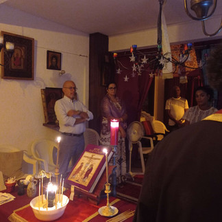 Apportez de l'huile en fonction du nombre de personnes,du vin rouge, ainsi que de la farine de blé, pour pain blanc. Marqué sur un petit papier le où les prénom(s) des personnes pour qui nous voulons prier et qui sont absentes.